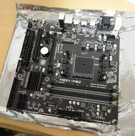 マザーボードは、GIGABYTEのGA-F2A88XM-D3HP。